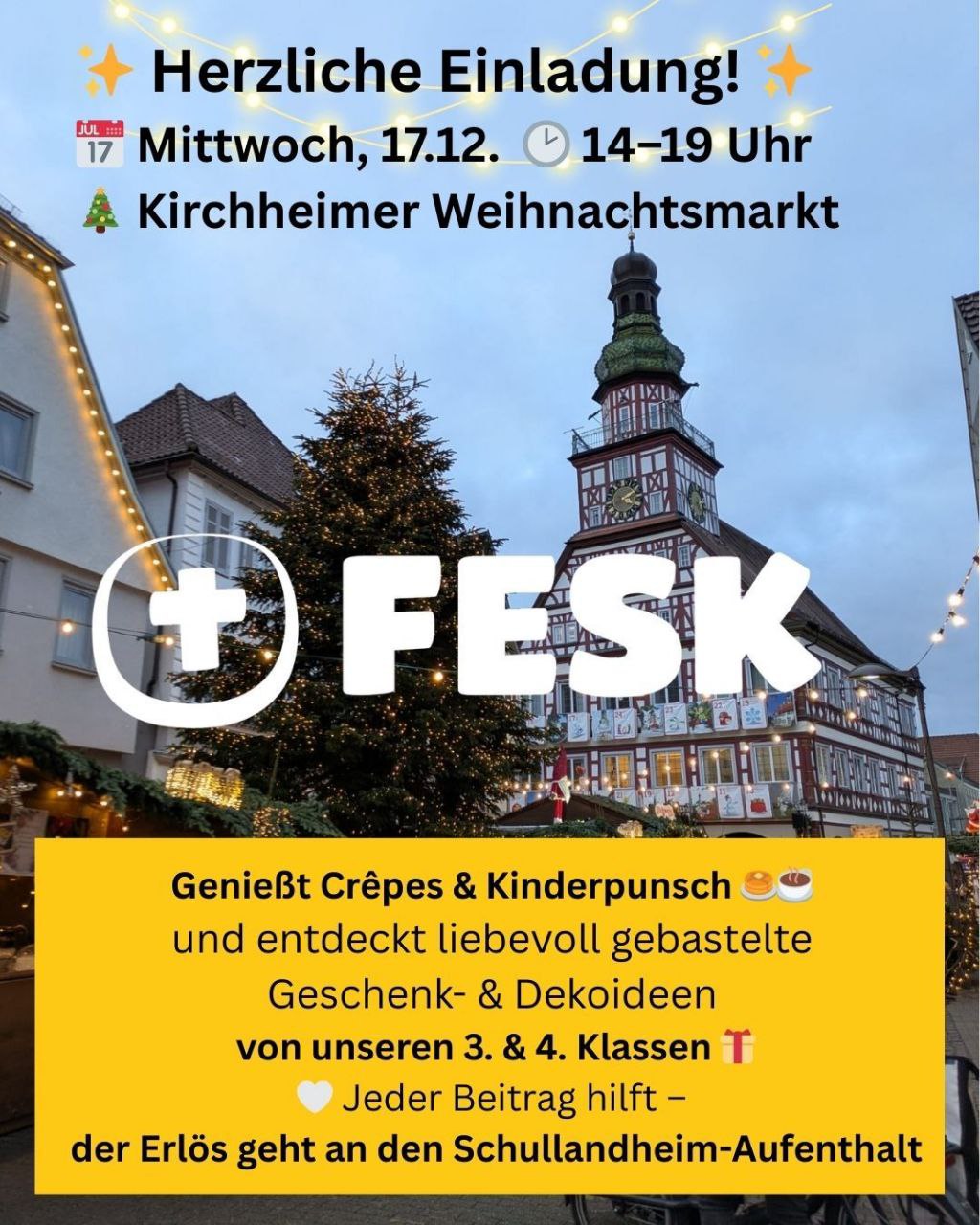 Neuigkeiten der FESKweihnachtsmarktSonntag, 14. Dezember 2025Weihnachtsmarkt 2025Weihnachtsmarkt 2025 Mehr lesenspendenaktionFreitag, 21. November 2025Spendenaktion "Gemeinsam mehr bewegen!" – 170.000 Euro für die Menschen in der Region.Spendenaktion "Gemeinsam mehr bewegen!" Mehr lesenaktuellDienstag, 11. November 2025Tag der offenen Tür FESK Realschule 27.01. und 06.02.2026Tag der offenen Tür FESK Realschule 27.01. und 06.02.2026 Mehr lesentag der offenen türgrundschuleDienstag, 21. Oktober 2025Tag der offenen Tür FESK Grundschule am 29.11.2025Tag der offenen Tür FESK Grundschule am 29.11.2025 Mehr lesenspendenFreitag, 17. Oktober 2025Netto Vereinsspenden sammelnNetto Vereinsspenden sammeln Mehr lesenSamstag, 7. Juni 2025Welcome to English Gardening!Welcome to English Gardening! Mehr lesendankgottesdienstDienstag, 3. Juni 202510 Jahre FESK – Unser Dankgottesdienst am 24.05.2510 Jahre FESK – Unser Dankgottesdienst am 24.05.25 Mehr lesenentschlossen gegen gewaltDienstag, 3. Juni 2025Kooperation mit „Entschlossen gegen Gewalt“Kooperation mit „Entschlossen gegen Gewalt“ Mehr lesengoldene oktobertageDienstag, 3. Juni 2025Go for Gold!Go for Gold! Mehr lesenDienstag, 3. Juni 2025« No one, no one, no one else ! » - JESUS begeistert !« No one, no one, no one else ! » - JESUS begeistert ! Mehr lesenDienstag, 3. Juni 2025"Vom Winde verweht" Haft- ond Hokafescht"Vom Winde verweht" Haft- ond Hokafescht Mehr lesentag der offenen türrealschuleDienstag, 3. Juni 2025Tag der offenen Tür – Freie Evangelische Realschule Kirchheim (FESK)Tag der offenen Tür – Freie Evangelische Realschule Kirchheim (FESK) Mehr lesenDienstag, 3. Juni 2025"Wie umarme ich einen Kaktus?" "Kann man Teenager heute noch erziehen?""Wie umarme ich einen Kaktus?" "Kann man Teenager heute noch erziehen?" Mehr lesenDienstag, 3. Juni 2025FES-Stand am 3.2.2024 auf dem MarktFES-Stand am 3.2.2024 auf dem Markt Mehr lesenweihnachtsmarktDienstag, 3. Juni 2025Weihnachtsmarkt 2023Weihnachtsmarkt 2023 Mehr lesenÜber unsDienstag, 3. Juni 2025Kirchheimer Bekenntnisschule stellt sich vorKirchheimer Bekenntnisschule stellt sich vor Mehr lesenspendenMontag, 5. Mai 2025VR-Spenden-Voting 2025: Start der Voting-PhaseVR-Spenden-Voting 2025: Start der Voting-Phase Mehr lesenelternabendMontag, 5. Mai 2025Elternabend mit Nicola Vollkommer - Teil 2Elternabend mit Nicola Vollkommer - Teil 2 Mehr lesenMontag, 14. April 2025English-Tea-Room und Orchestergründung an der FESKAn der Freien evangelischen Schule Kirchheim gibt es einige Besonderheiten - die Freie Evangelische Schule hatte in den vergangenen Wochen gleich zwei besondere Highlights: Am 9. November öffnete die FESK – Grundschule ihre Türen für einen Erlebnistag. Eine gelungene Gelegenheit für interessierte Kinder und deren Eltern die Schule von innen kennenzulernen. Mehr lesen